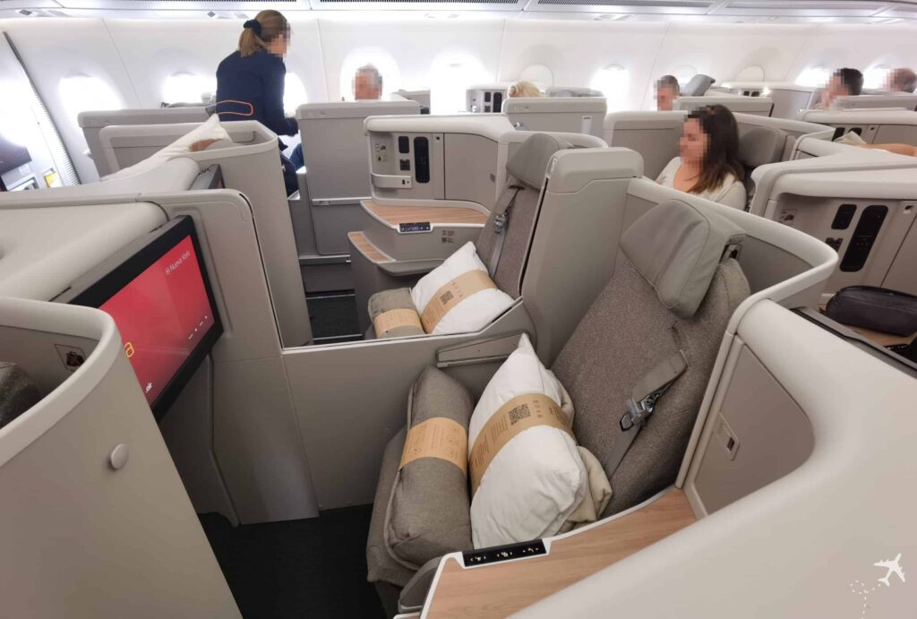 - A330: 1-2-1 layout with lie-flat seats and direct aisle access.